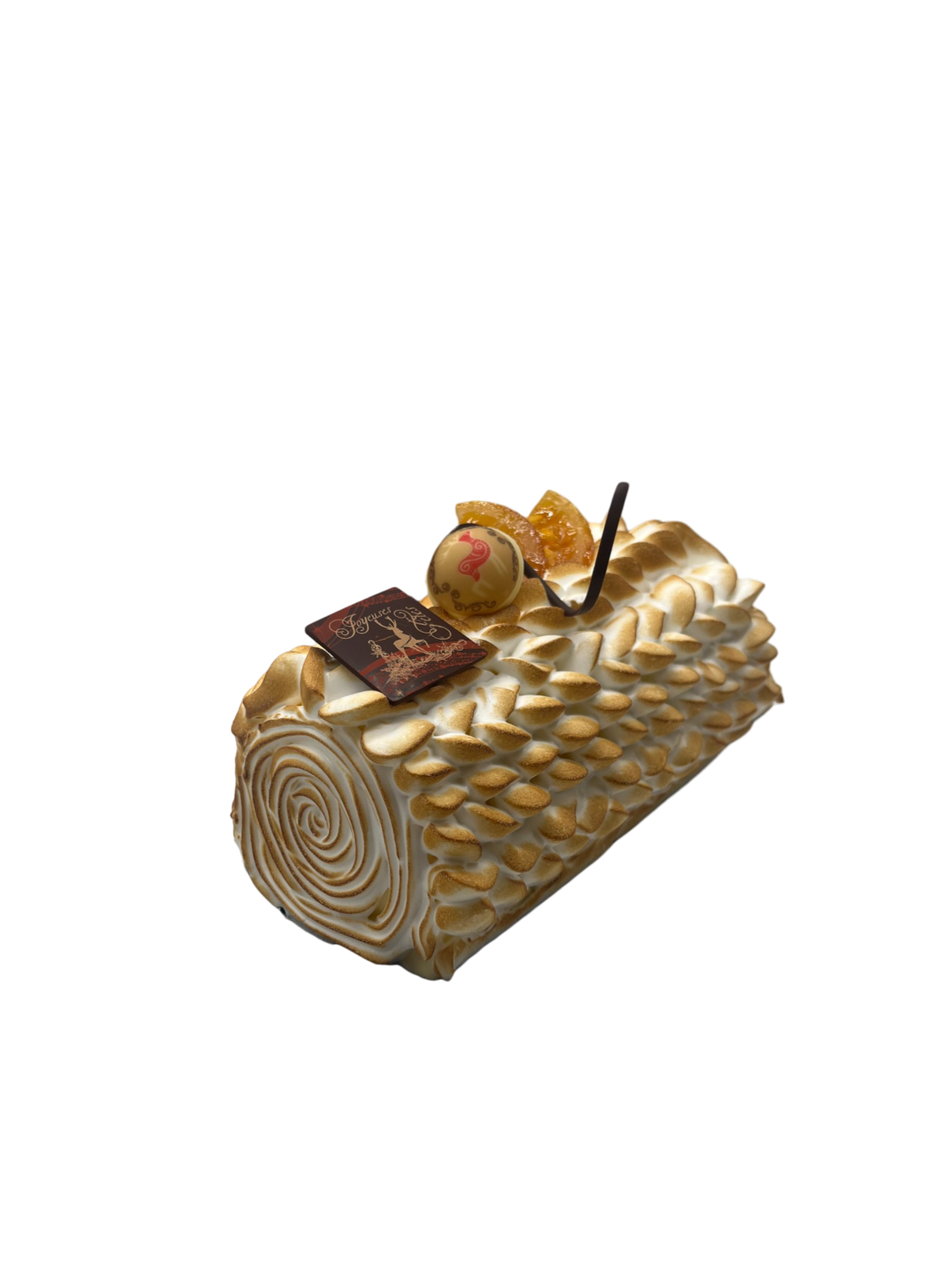 Délicieuse glace au Grand Marnier sur biscuit cuillère légèrement parfumé Grand Marnier, recouvert d’une meringue italienne